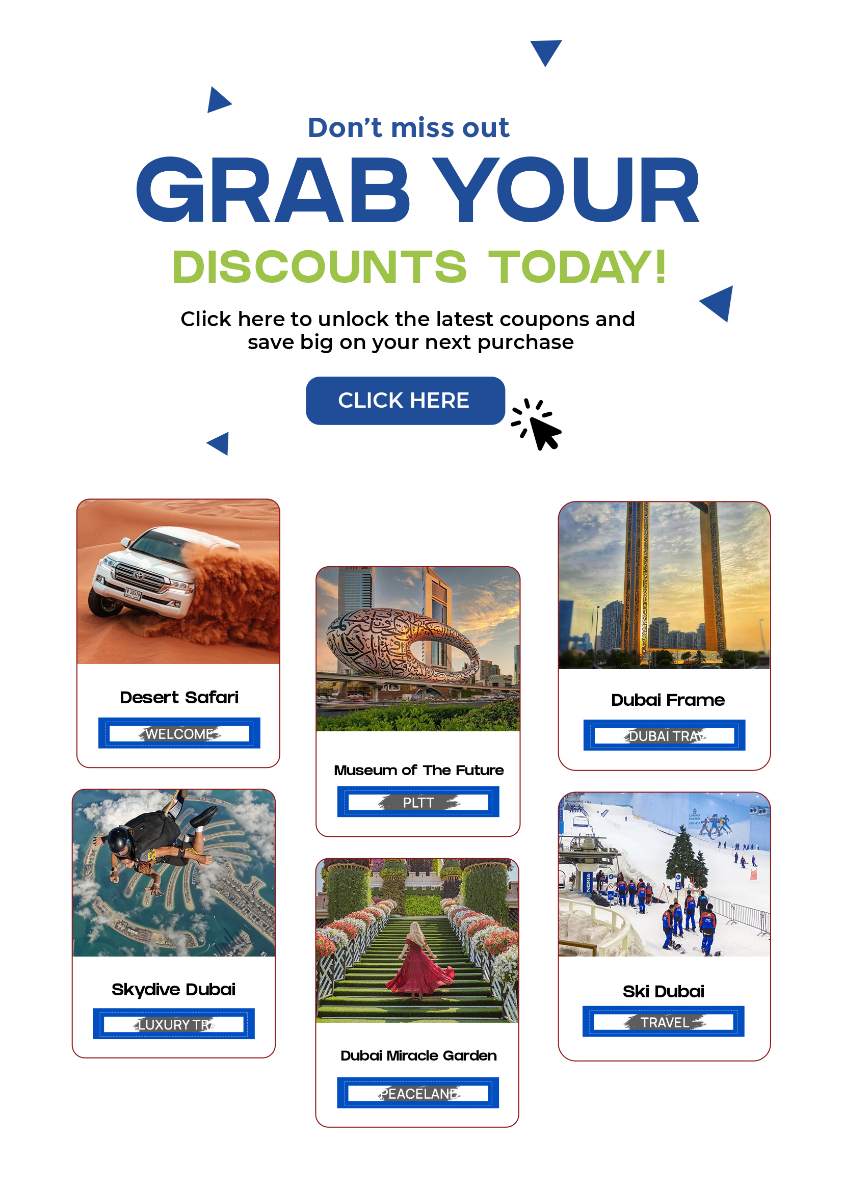 EXCELLENT Based on 250 reviews Posted on KlauieVerified Lourve Ticket Purchase Thank you for your prompt and reliable service in providing the Louvre ticket. Truly appreciated! The entire process was smooth and hassle-free from start to finish.Posted on Abror AVerified I want to thank you for your amazing and super fast service! I want to thank you for your amazing and super fast service!According to the website rules, my ticket was supposed to arrive within 24 hours after purchase.However, I contacted your team on WhatsApp, and within just a few minutes they solved the issue and sent me the tickets.Because of your quick support, I was able to visit the Butterfly Garden the very same day — just one hour after buying the tickets.Thank you again for your professionalism and great service! 🌸🦋Posted on Fatima MVerified Sky Views dubai Beautiful view from above beautiful I loved 👏👏👏 it was a very nice adventure unfortunately the feeling of hard sliding that 3 seconds , walking on a transparent floor really a beautiful feeling we liked 🥰Posted on Tarsha IVerified Great Fantastic city tour.Our driver was sensational, knew all the shortcuts and took us to all the local attractions.I would recommend a city tourPosted on milanaa.Verified interactive and interesting and fun I REALLY LIKED IT. IT WAS VERYY INTERRACTIVE AND INTERESTING 😻😻 wish there were more water parts but overall lovely experiencePosted on Giacinto LVerified Beautiful experience Our guide Zahid was super helpful and attentive to our needs, really nice and prepared... He took us around Dubai at sunset making us discover all the most iconic places in this incredible city... A wonderful experience... highly recommended...Posted on Hiasl-ToursVerified Sky Views Observatory with glass slide - Super ... and the view only! Why did we choose Sky Views?Clearly, the Burj Khalifa is in the pictures (o;Great view with glass floor at 220m height, all around glazed and the slide is also made of glass! For the rather low price in comparison really great!Posted on happyhols3Verified Great fun day Bought tickets on official site as get extra day free which was amazing two days for price of one Loads of family rides got there for opening and had good hour with no long queues it did get hot from lunch and the floor is lava is a real game here even with double water socks it was hot on our feet All staff helpful new water shoes availability at every kiosk and even food people help with directions Every single life guard friendly and helpful you do have to remove own water shoes with grips for some rides so if you need to hold on tight maybe use their free ones We had the best time here so much fun It is big it was hot and tiring the steps are a killer especially when carrying a tube for the ride and the drink prices are expensive but we made some amazing memoriesVerified by TrustindexTrustindex verified badge is the Universal Symbol of Trust. Only the greatest companies can get the verified badge who has a review score above 4.5, based on customer reviews over the past 12 months. Read more