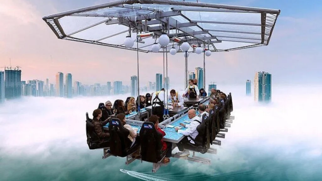 Dinner in the Sky Dubai is an unmatched eating experience fifty meters above the ground, hung by a crane at Skydive Dubai in Al Sufouh. With 360-degree views of famous sites including the Burj Khalifa, Palm Jumeirah, and Dubai Marina, this unusual venue fits up to 22 guests per session. The 90-minute event consists of a delicious three-course lunch created live by chefs from prestigious hotels including Le Méridien and The Westin. Daily sessions run from 2:00 PM to 11:30 PM and cost AED 699 to AED 799 per person depending on the time and day. Perfect for special events, this exciting excursion provides a unique fusion of great food with amazing airborne views.