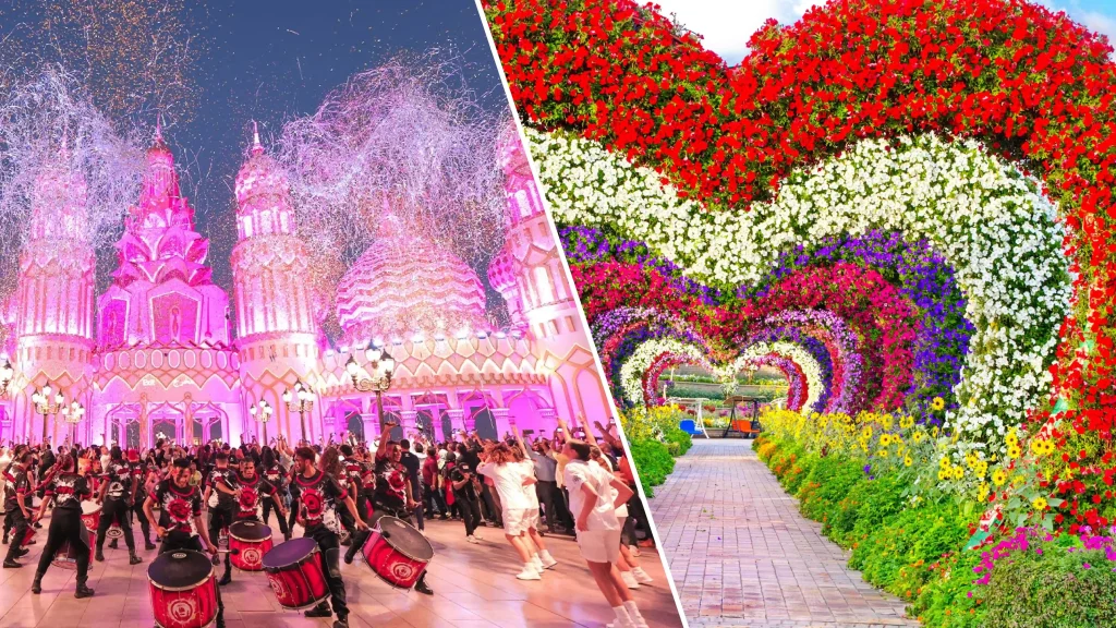Embark on a global journey through Dubai’s renowned Global Village, where diverse pavilions showcase the richness of countries like India, Pakistan, Africa, Saudi Arabia, and more. Extend your adventure to the world’s largest natural flower garden at Dubai Miracle Garden, where fresh blooms transform into unique and beautiful structures. Explore both Global Village and Miracle Garden with this exclusive offer for an unforgettable cultural and natural experience in Dubai.