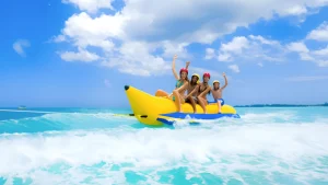 The Banana Boat Ride is a fun, high-energy water activity for groups of all ages that will make you laugh, scream, and splash. A speedboat